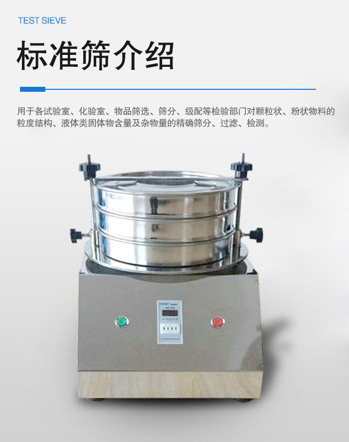 標(biāo)準(zhǔn)篩主要用于各試驗(yàn)室、化驗(yàn)室、物品篩選、篩分、級(jí)配等檢驗(yàn)部門(mén)對(duì)顆粒狀、粉狀物料的粒度結(jié)構(gòu)、液體類固體物含量及雜物量的篩分、過(guò)濾、檢測(cè)。